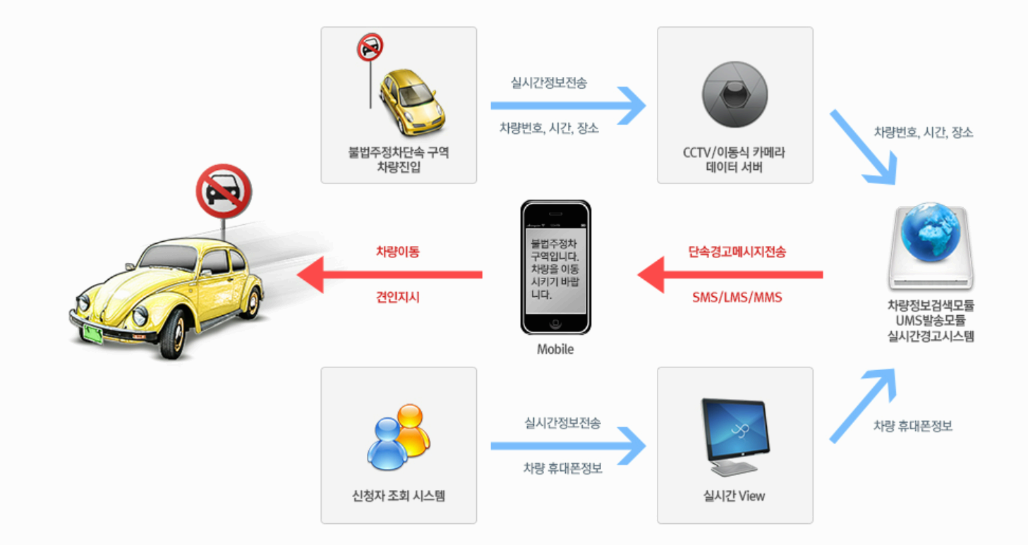 따라서, 불법주정차 차량에 사전 경고 안내메시지를 전송하여 운전자가 차량을 이동하면