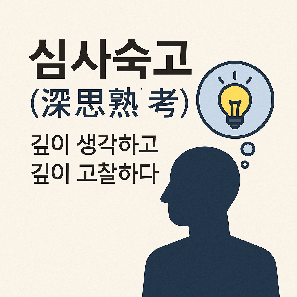 심사숙고는 한자어 조합 자체가 뜻을 분명히 드러내는 형태로, 깊게 생각(深思)하고 충분히 고찰(熟考)한다는 두 동작이 결합된 표현입니다.