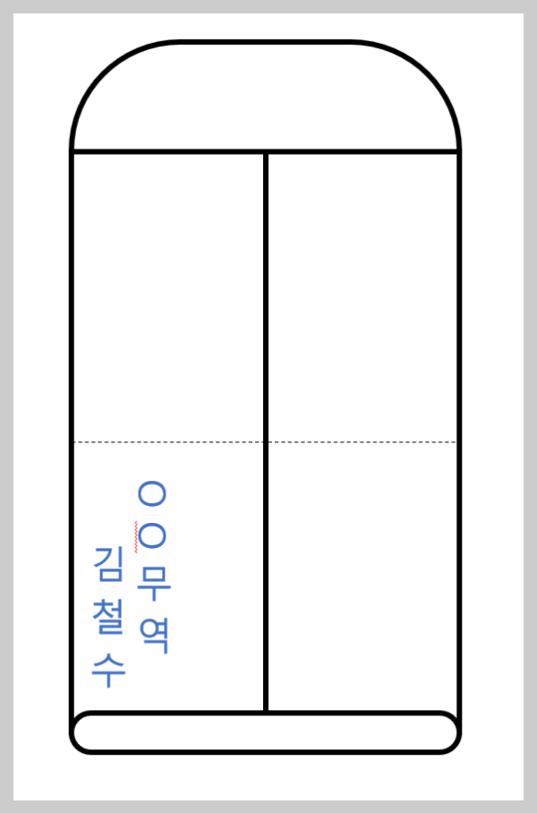 • 봉투 중앙선을 넘어 오른쪽 영역까지 침범