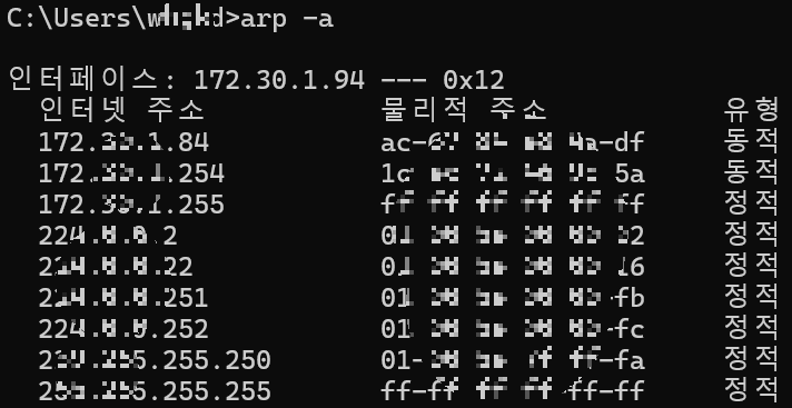 - arp 명령어는 로컬 네트워크(LAN)에서만 동작(즉, 인터넷 상 외부 IP의 MAC 주소는 알 수 없음)